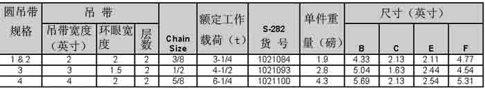 l 設(shè)計(jì)配套使用第三(Ⅲ)類、7級且兩端均為環(huán)眼的雙層吊帶。吊帶寬度等于或超過3英寸的,要求配有楔形環(huán)眼。