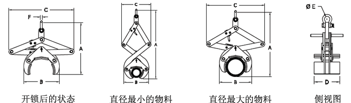 - 夾鉗的開(kāi)口大小可根據(jù)具體作業(yè)物料直徑的不同進(jìn)行調(diào)節(jié)。