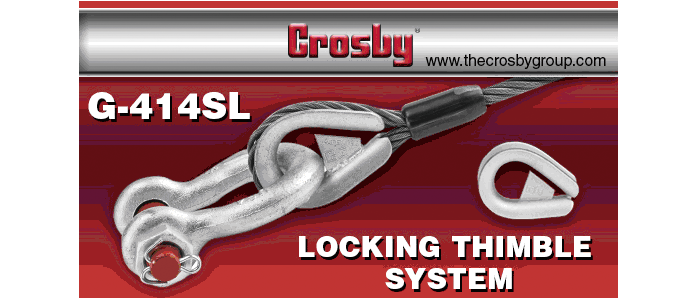 現(xiàn)場作業(yè)時,我們經(jīng)常會發(fā)現(xiàn)有人私自以尺寸規(guī)格不匹配甚至是質次的卸扣來替代正常操作使用。從作業(yè)安全的角度來講,這是十分危險的,因為它容易導致作業(yè)中的整條鋼絲繩索具或整個吊索具系統(tǒng)產(chǎn)生結構性的不穩(wěn)定趨勢。為防止出現(xiàn)這樣的安全風險,我們推出了G-414SL雞心環(huán)鎖止系統(tǒng)。通過使用帶有鎖止功能設計(已獲得專利)的雞心環(huán),我們可以防止已加工好的成套鋼絲繩索具上的原裝卸扣被人為故意拆卸掉,這樣方可保證整條鋼絲繩索具在使用時其整體結構的完整性和穩(wěn)定性。