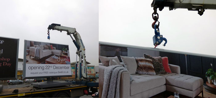近期,英國一家屋外媒體服務(wù)公司利用多臺(tái)“速得”智能吊鉤設(shè)備,順利地完成了在各種不同戶外場所,如建筑工地、活動(dòng)會(huì)場、公園及其他類似地點(diǎn),搭建大型露天廣告牌的工作任務(wù)。在工作現(xiàn)場,我們可以看到,卡車吊的主鉤上掛了一臺(tái)5噸的‘速得’自動(dòng)吊鉤,通過其上磁體的吸引作用將索具固定連接好,通過每塊廣告牌上的連接用旋轉(zhuǎn)吊點(diǎn)實(shí)現(xiàn)安全而高效的吊裝作業(yè)。