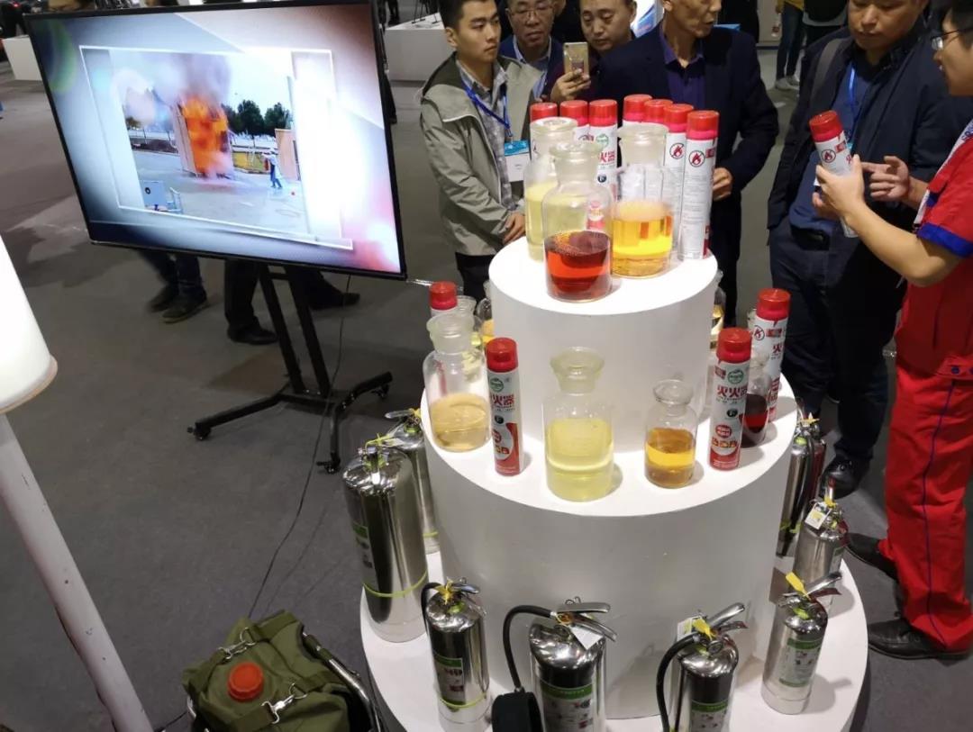 這家公司展示的便攜噴霧罐式的滅火器,現(xiàn)場(chǎng)展示,吸引了一些參觀者。