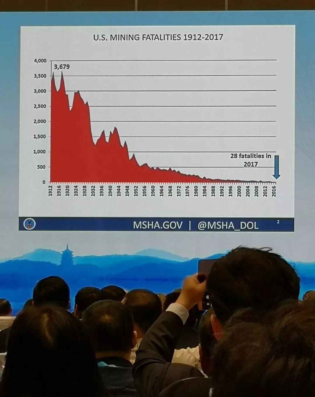 再看看這張圖,在這個(gè)論壇上一展示,不言而喻,含意頗深!首先,不是任何國(guó)家或地區(qū)愿意、可以展示類似這張“美國(guó)1912-2017礦山死亡人數(shù)統(tǒng)計(jì)圖“(累計(jì)105年),再者,看到人家的趨勢(shì)了吧?再者,2017年美國(guó)礦山事故死亡人數(shù)28人。MSHA.gov 的數(shù)據(jù)。