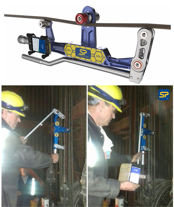 測試中,速得COLT測繩器夾緊已處在張緊狀態(tài)的鋼絲繩,然后鋼絲繩上形成的張緊力可以直接顯示在測繩器上。Tensology公司以前通過輥壓測定儀來完成此項(xiàng)工作。作為鋼絲繩相關(guān)專業(yè)服務(wù)提供商Tensology的一名總監(jiān),巴里摩德表示說, 該鋼廠最近招標(biāo)了一項(xiàng)物料提升搬運(yùn)系統(tǒng)舊繩改造項(xiàng)目,包括配重和其他一些系統(tǒng)零部件都需要進(jìn)行替換。以前使用很多年的輥壓測定儀因?yàn)椴荒苤苯犹峁┳x值也在設(shè)備改造更換范圍之內(nèi)。而且,操作者需要參考有關(guān)的校準(zhǔn)圖,每次安裝時(shí)此工作都需要兩個(gè)人共同完成。