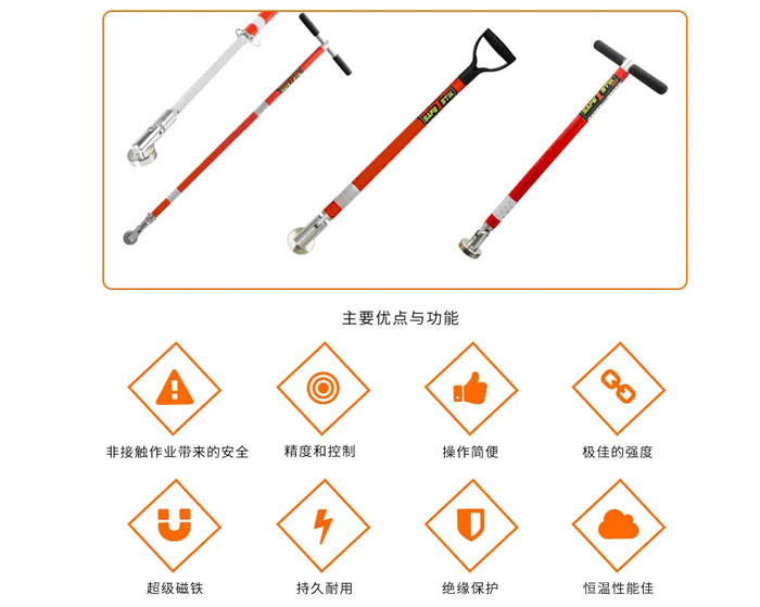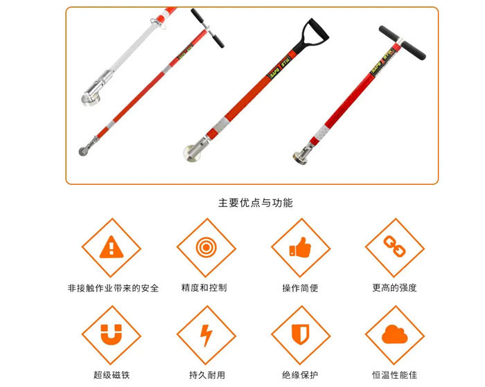 四、便攜式磁力溜桿主軸,超強(qiáng)玻璃纖維聚合物,安全可靠,堅(jiān)固耐用,同時(shí)具有耐紫外線,耐腐蝕和耐濕熱性,還具有絕緣性能,防止電擊。