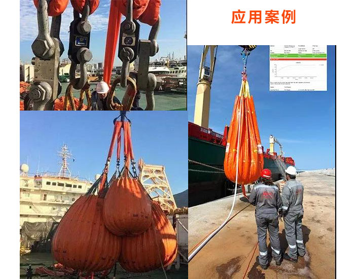 在此測(cè)試項(xiàng)目進(jìn)行時(shí),用戶需要對(duì)幾臺(tái)用于海上施工作業(yè)的起重機(jī)設(shè)備進(jìn)行試驗(yàn)負(fù)荷測(cè)試,通過實(shí)際測(cè)試來驗(yàn)證被測(cè)設(shè)備是否具有足夠的起吊能力。為獲取和提供這方面的最新數(shù)據(jù)文件資料,客戶方采取了水袋測(cè)重的方式以逐漸增大加載負(fù)荷,從而保證測(cè)試可以安全順利地完成。