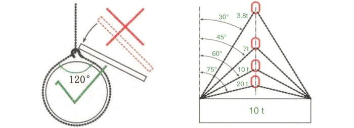 ▶ 好的結(jié)索方式可以保證負(fù)荷物在落地之前的移動(dòng)過程中始終保持穩(wěn)定和安全,而且不會(huì)對(duì)負(fù)荷物本身、吊裝設(shè)備以及其他人員的生命財(cái)產(chǎn)安全帶來損害。▶ 確定負(fù)荷物的重量,保證結(jié)索方式的恰當(dāng),并且查看吊索具及其連接輔件有無明顯缺陷問題。提前預(yù)留出負(fù)荷物落地的區(qū)域空間,保證此區(qū)域的地面有足夠的承重能力。生產(chǎn)廠家提供的具體建議和要求也必須采納。▶ 保證負(fù)荷物上的起吊點(diǎn)在其重心以上的位置,任何松弛或松散的部分都必須加以緊固或拆掉。對(duì)于起吊點(diǎn)上的連接部件,必須保證吊鉤或卸扣等輔件連接緊固。整個(gè)吊索具上不得有任何打彎、打結(jié)或自行纏繞現(xiàn)象出現(xiàn)。▶ 負(fù)荷物的邊角處必須用護(hù)墊或采取其他保護(hù)措施加以保護(hù),防止其與吊索具直接接觸而造成負(fù)荷物或吊索具的損壞。▶ 不得超過吊索具上標(biāo)注的安全工作載荷(SWL)和吊鏈角度。采用環(huán)形封閉吊法時(shí),套環(huán)角度不得超過120°。 ▶ 不得利用外力敲擊或拉拽鋼絲繩索具或其連接輔件以固定安裝到位,必須通過正確方法進(jìn)行結(jié)索。▶ 當(dāng)起重吊鉤上需要懸掛多肢吊索時(shí),必須使用主環(huán)或卸扣以避免繩索或吊帶在吊鉤上卡結(jié)。▶ 使用規(guī)范的手勢(shì)信號(hào)指揮起重吊裝操作。▶ 查看負(fù)荷物的上方有無任何障礙物,如電線等。▶ 相關(guān)人員與負(fù)荷物之間保持一定安全距離,保證負(fù)荷物在移動(dòng)過程中不會(huì)纏繞或絆倒工作人員。