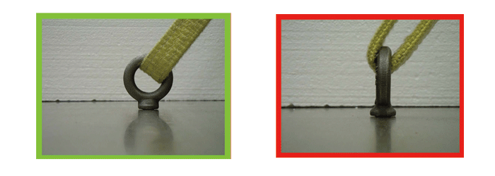 — 斜拉起吊作業(yè)時(shí)使用不帶有托肩結(jié)構(gòu)的環(huán)眼螺栓吊點(diǎn)!