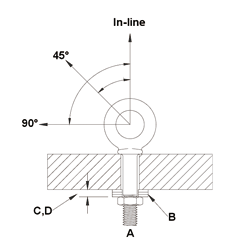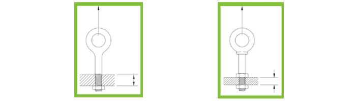— 環(huán)眼螺栓吊點(diǎn)安裝到盲孔上時(shí),保證螺桿螺紋部分咬合的長(zhǎng)度是螺紋直徑的至少2.5倍