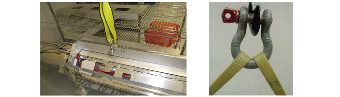 — 如采用雙肢或多肢結(jié)索結(jié)構(gòu)進(jìn)行起吊作業(yè),嚴(yán)禁使用圓柱 銷卸扣,因?yàn)檫@樣可能會產(chǎn)生側(cè)向負(fù)載。
